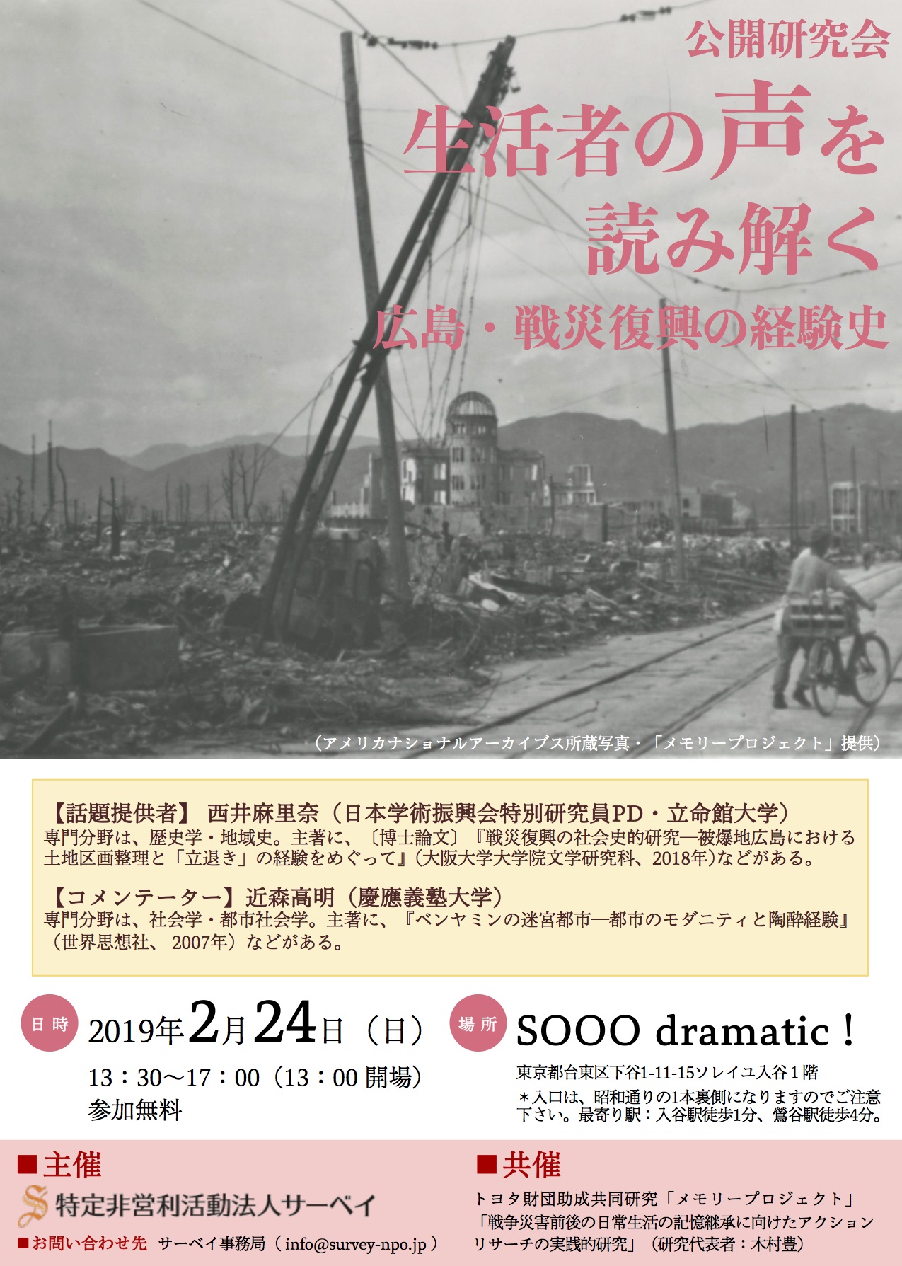 (2019-02-07)公開研究会「生活者の声を読み解くーー広島・戦災復興の経験史」開催